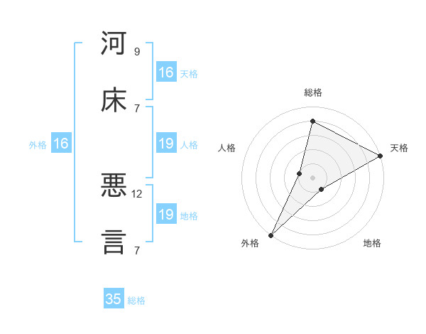 河床 悪言さんの天格は16画の5点!