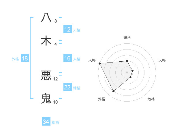 八木 悪鬼さんを姓名の画数から五運を鑑定