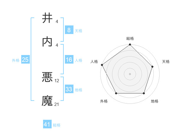 井内 悪魔さんを姓名の画数から五運を鑑定