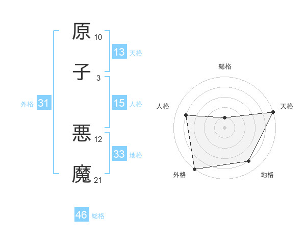 原子 悪魔さんを姓名の画数から五運を鑑定