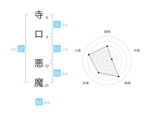 寺口 悪魔さんを姓名の画数から五運を鑑定