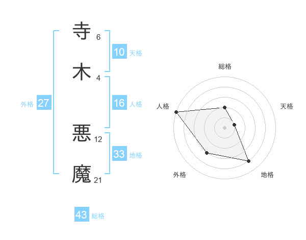 寺木 悪魔さんを姓名の画数から五運を鑑定