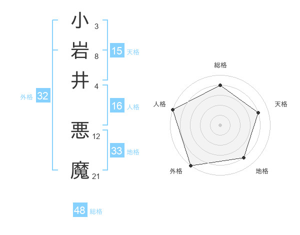 小岩井 悪魔さんの天格は15画の4点!