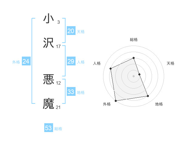 小沢 悪魔さんの総格は53画の3点!