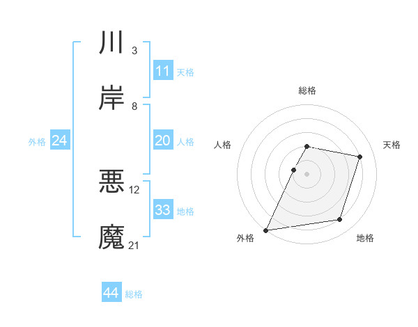 川岸 悪魔さんの総格は44画の2点!