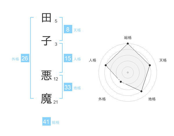 田子 悪魔さんを姓名の画数から五運を鑑定