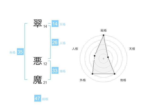 翠 悪魔さんの総格は47画の5点!