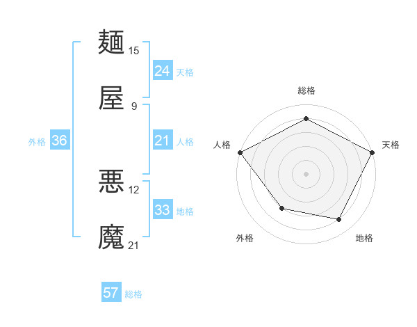 麺屋 悪魔さんを姓名の画数から五運を鑑定