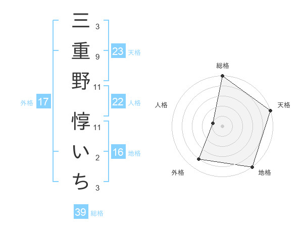 三重野 惇いちさんを姓名の画数から五運を鑑定
