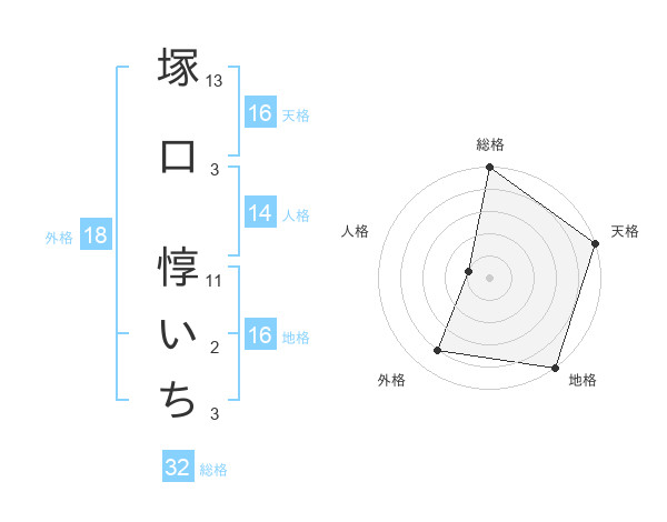 塚口 惇いちさんを姓名の画数から五運を鑑定
