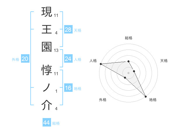 現王園 惇ノ介さんを姓名の画数から五運を鑑定