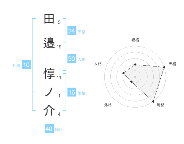 田邉 惇ノ介さんの総格は40画の2点!