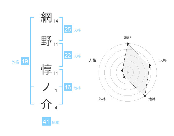 網野 惇ノ介さんを姓名の画数から五運を鑑定