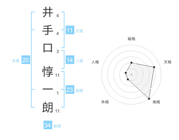 井手口 惇一朗さんの天格は11画の4点!