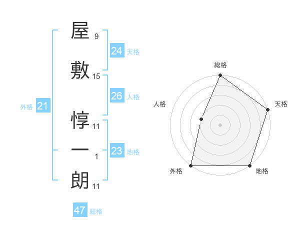 屋敷 惇一朗さんを姓名の画数から五運を鑑定