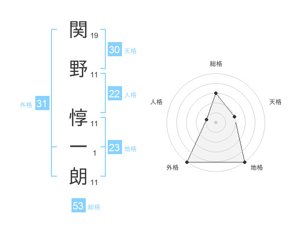 関野 惇一朗さんの総格は53画の3点!