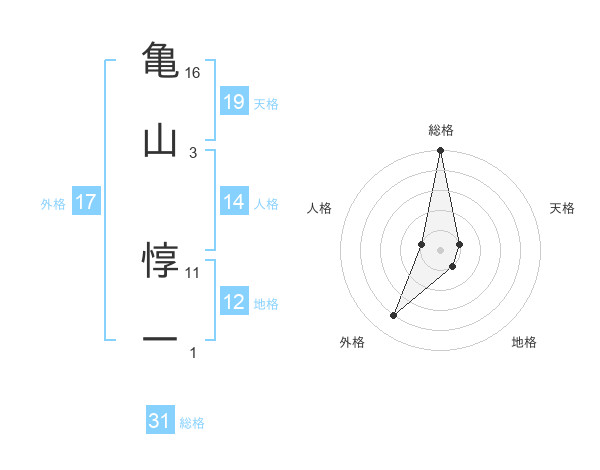 亀山 惇一さんを姓名の画数から五運を鑑定