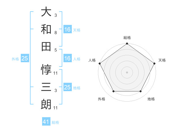 大和田 惇三朗さんの天格は16画の5点!