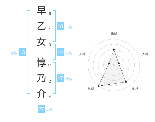 早乙女 惇乃介さんを姓名の画数から五運を鑑定