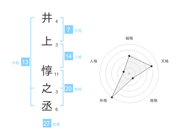 井上 惇之丞さんを姓名の画数から五運を鑑定