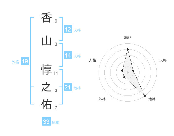 香山 惇之佑さんを姓名の画数から五運を鑑定