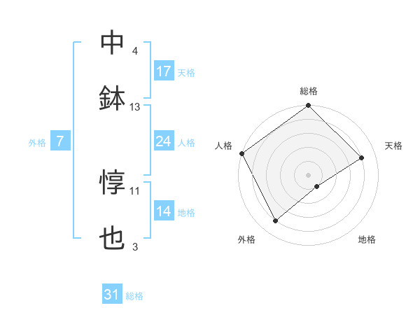 中鉢 惇也さんの天格は17画の4点!