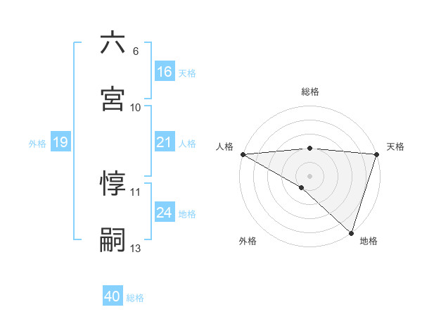 六宮 惇嗣さんの地格は24画の5点!