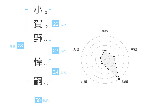 小賀野 惇嗣さんを姓名の画数から五運を鑑定