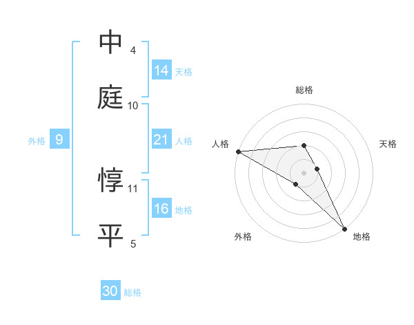 中庭 惇平さんの総格は30画の2点!