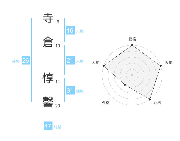 寺倉 惇馨さんの総格は47画の5点!