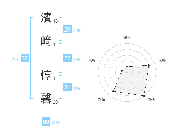濱﨑 惇馨さんの外格は38画の4点!