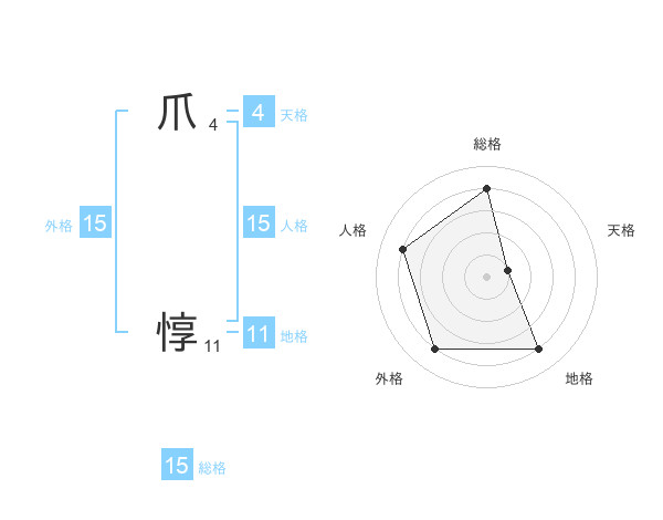 爪 惇さんの総格は15画の4点!