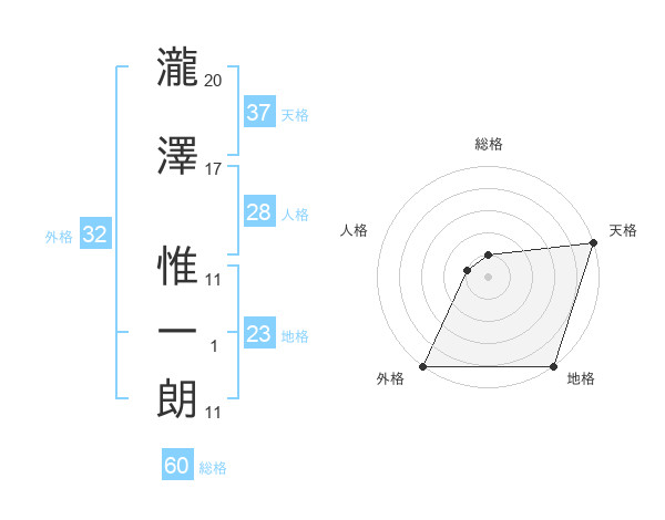 瀧澤 惟一朗さんの天格は37画の5点!