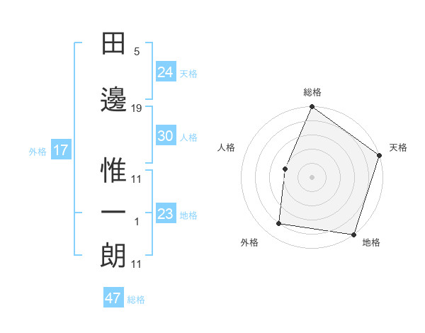 田邊 惟一朗さんを姓名の画数から五運を鑑定