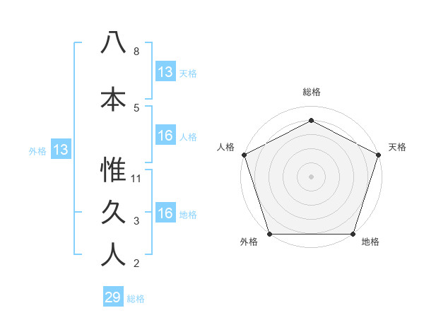八本 惟久人さんの外格は13画の5点!