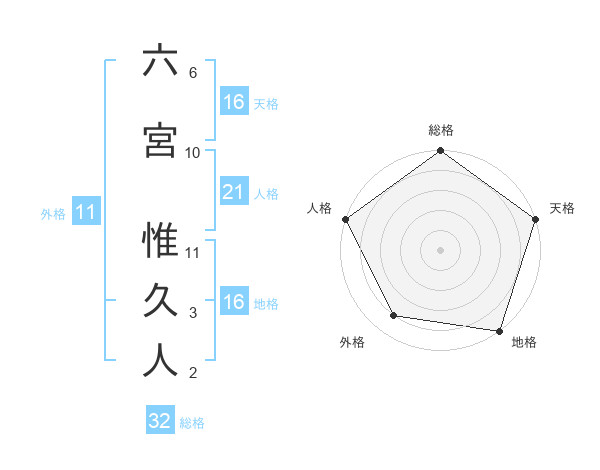 六宮 惟久人さんの総格は32画の5点!