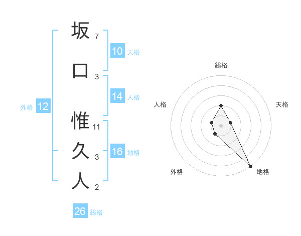 坂口 惟久人さんの総格は26画の2点!