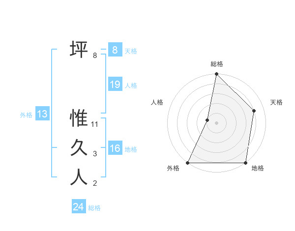 坪 惟久人さんの外格は13画の5点!