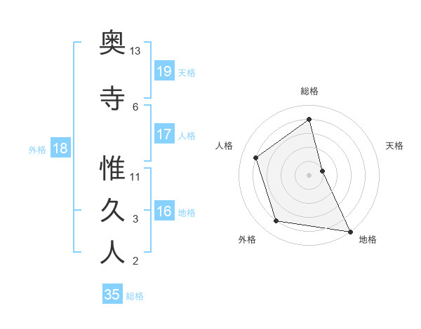 奥寺 惟久人さんの天格は19画の1点!