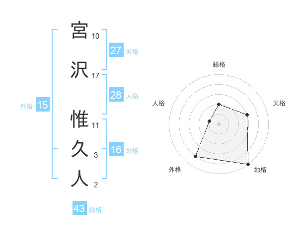 宮沢 惟久人さんを姓名の画数から五運を鑑定