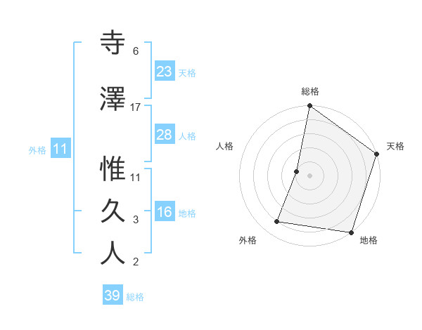寺澤 惟久人さんを姓名の画数から五運を鑑定