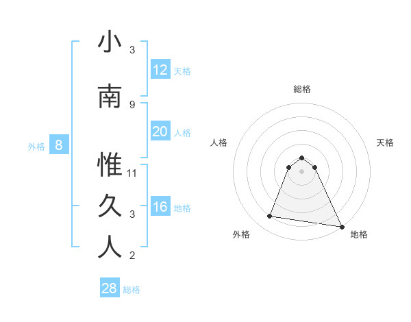 小南 惟久人さんを姓名の画数から五運を鑑定