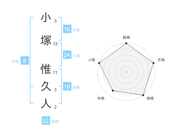 小塚 惟久人さんを姓名の画数から五運を鑑定