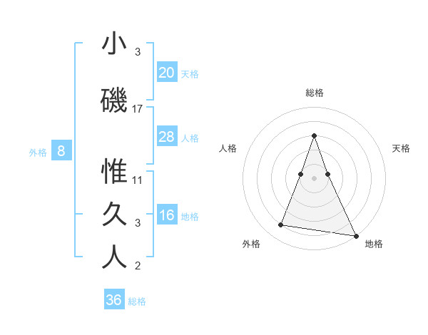 小磯 惟久人さんの外格は8画の4点!