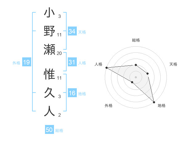 小野瀬 惟久人さんを姓名の画数から五運を鑑定