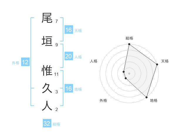 尾垣 惟久人さんを姓名の画数から五運を鑑定