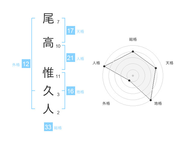 尾高 惟久人さんの天格は17画の4点!