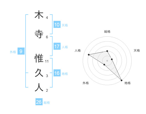 木寺 惟久人さんを姓名の画数から五運を鑑定