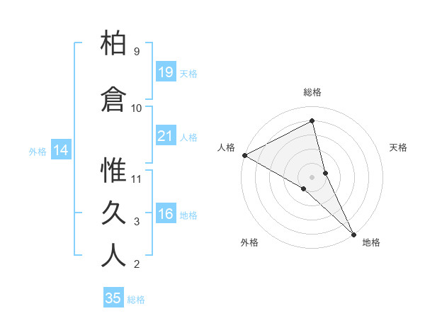 柏倉 惟久人さんの総格は35画の4点!
