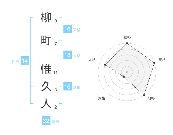 柳町 惟久人さんの総格は32画の5点!